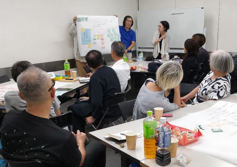 ワークショップの最後には、各班が模造紙を掲げながら議論の成果を発表し、全体での意見交換を行いました。日頃なかなか口にできない思いを率直に語ることができ、参加者からは「エリマネ・ネットの今後に向けてヒントを得られた」「他のエリマネの視点を知ることができて刺激になった」との声が聞かれました。