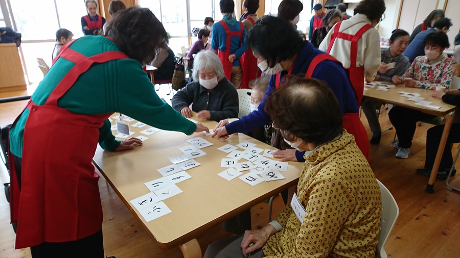 1月はオカリナの演奏を聴き、その後、大型トランプ、かるた、百人一首で坊主めくりなど、お正月らしいゲームを楽しみました。